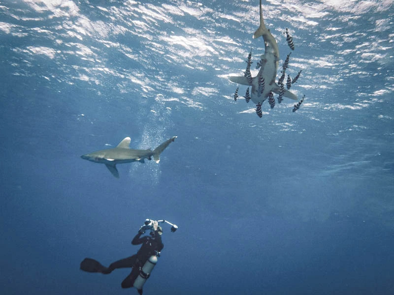 Head to a new reef site for another round of snorkeling — keep your eyes open for dolphins, sea turtles, and possibly even oceanic whitetip sharks in the deeper blue.
