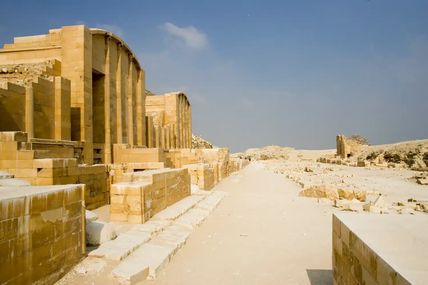 Explore the world’s first pyramid, the Step Pyramid of Djoser, and wander through the impressive complex. Visit Teti’s mastaba tombs and, if open, the Serapeum with its mysterious underground chambers.